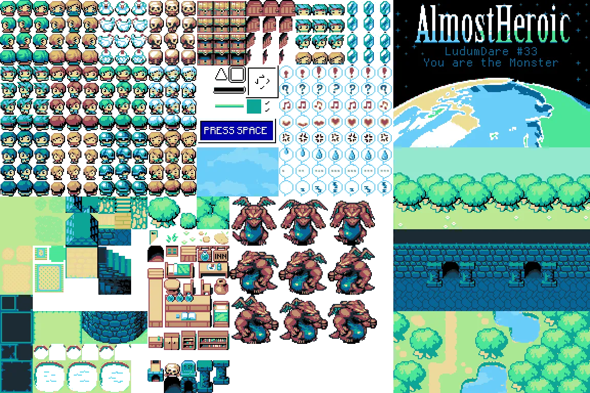 Je les ai plus tard distribuées en pack de ressources libres sous le nom "Free RPG Asset Pack", au plaisir de retrouver d'autres projets réalisés avec. :)
