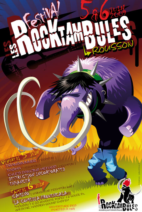 Les Rocktambules c'est un super festival dans le sud. J'ai eu l'honneur d'avoir été demandé pour faire l'affiche !! (Je ne sais plus comment) Et... euh... bah ils ont plutôt pris une infographiste qui a fait un truc bien moins rock. :'(
