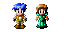 Mes premiers sprites je les faisais en deux parties : d'abord en pur pixel art, et ensuite un petit coup de densité+/densité- (outil de Photoshop) pour ajouter plus de relief (et accessoirement détruire le côté pixelart) et... je pense que ça rendait bien cool. Qui est-donc cette femme ? Un premier design de Séréna ?